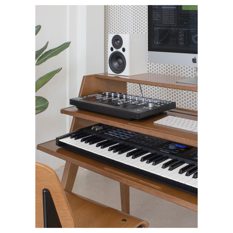 The Compact One is a three tier music production desk adapted for 61 keys keyboards.