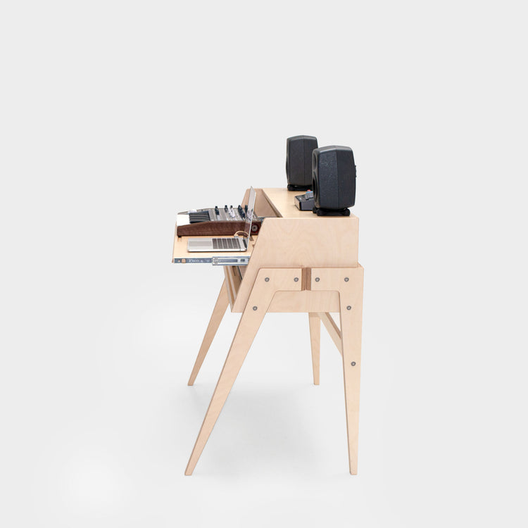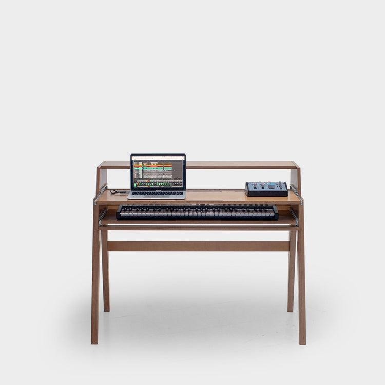 The Compact One is a desk made for music producers. With its unique and innovative design - featuring dual keyboard trays - it offers three levels of workspace on a minimal surface. Inspired by Mid Century Modernism it strikes the perfect balance between form and function - bridging the gap between your recording studio and home interior. Built of high quality materials in Barcelona, this studio desk is made to last, and to adapt and evolve along with your music.